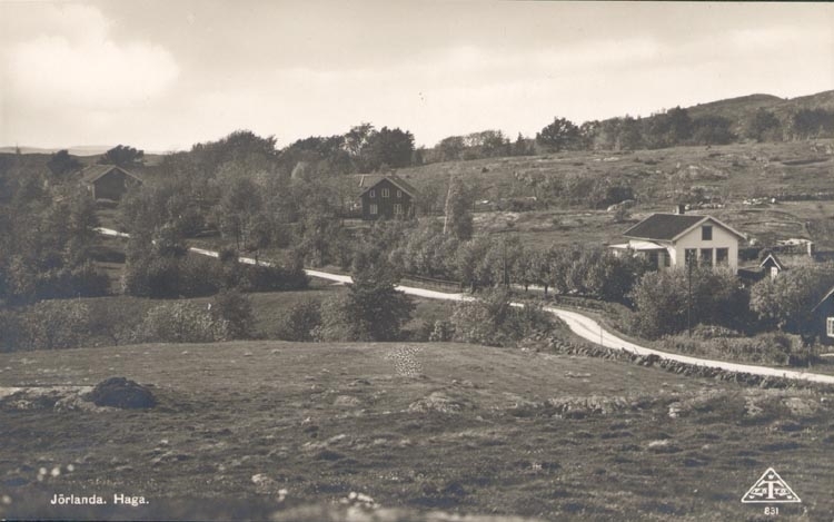"SIKT V. LÄNGS VÄGEN JÖRLANDA-HÖG. (FOTOGR. TAGET ANTAGL. OMKRING 1920-T`s SLUT)".