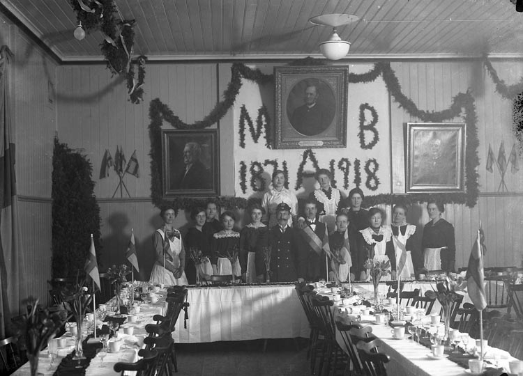 Enligt fotografens noteringar: "Fest i föreläsningssalen för Munkedals Aktiebolag, Severins personal."