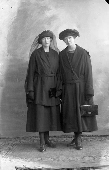Två kvinnor hos fotografen. Den vänstra kvinnan har sorgflor fästat på sin huvudbonad.