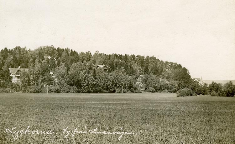 Enligt Bengt Lundins noteringar: "Lyckorna. Vy från Linnevägen. Lyckorna från söder".
