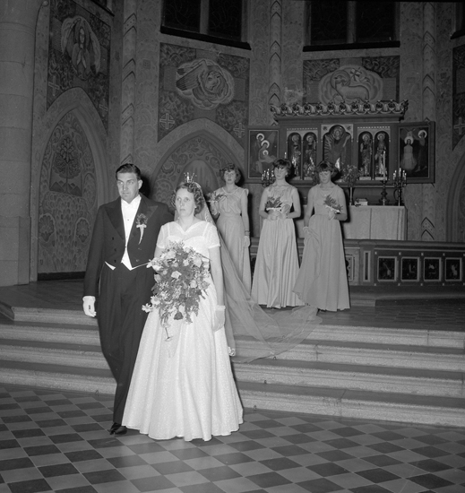 Text till bilden: "Brudfoto i kyrkan. (Lindström). Midsommarafton. 1955"