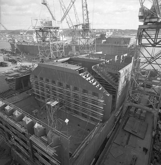 OBO-fartyg 210 Havtor på stapelbädd III. I bakgrunden fartygsbygge på stapelbädd II.