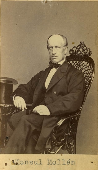 Text på kortets baksida: "Konsul B. E. Mollén, 1851".