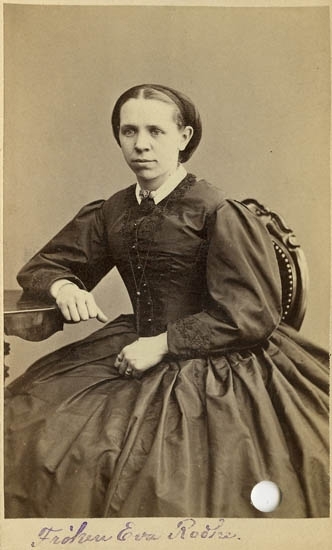 Text på kortets baksida: "Lärarinnan Eva Rodhe Göteborg. F. 1836".
