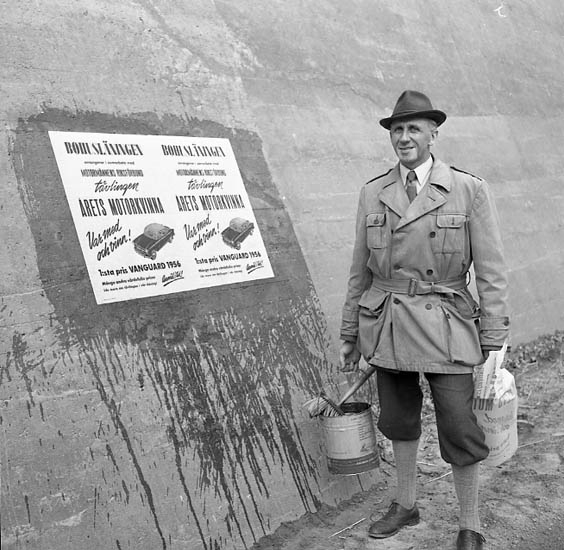 Enligt notering: "Bohusläningens vaktmästare Pronner? klistrar affischer 27-4-56".