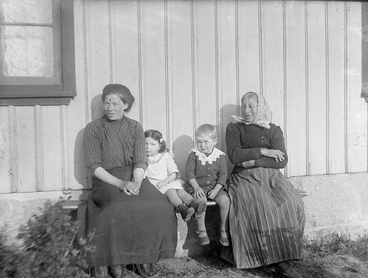 Enligt notering: "Två kvinnor, två barn vid husväggen".