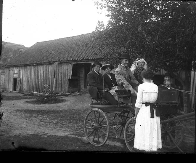 Enligt notering: "Bröllopet i Bärby 3 juni 1921. Två par i vagnen. Anders Andersson o Ester".