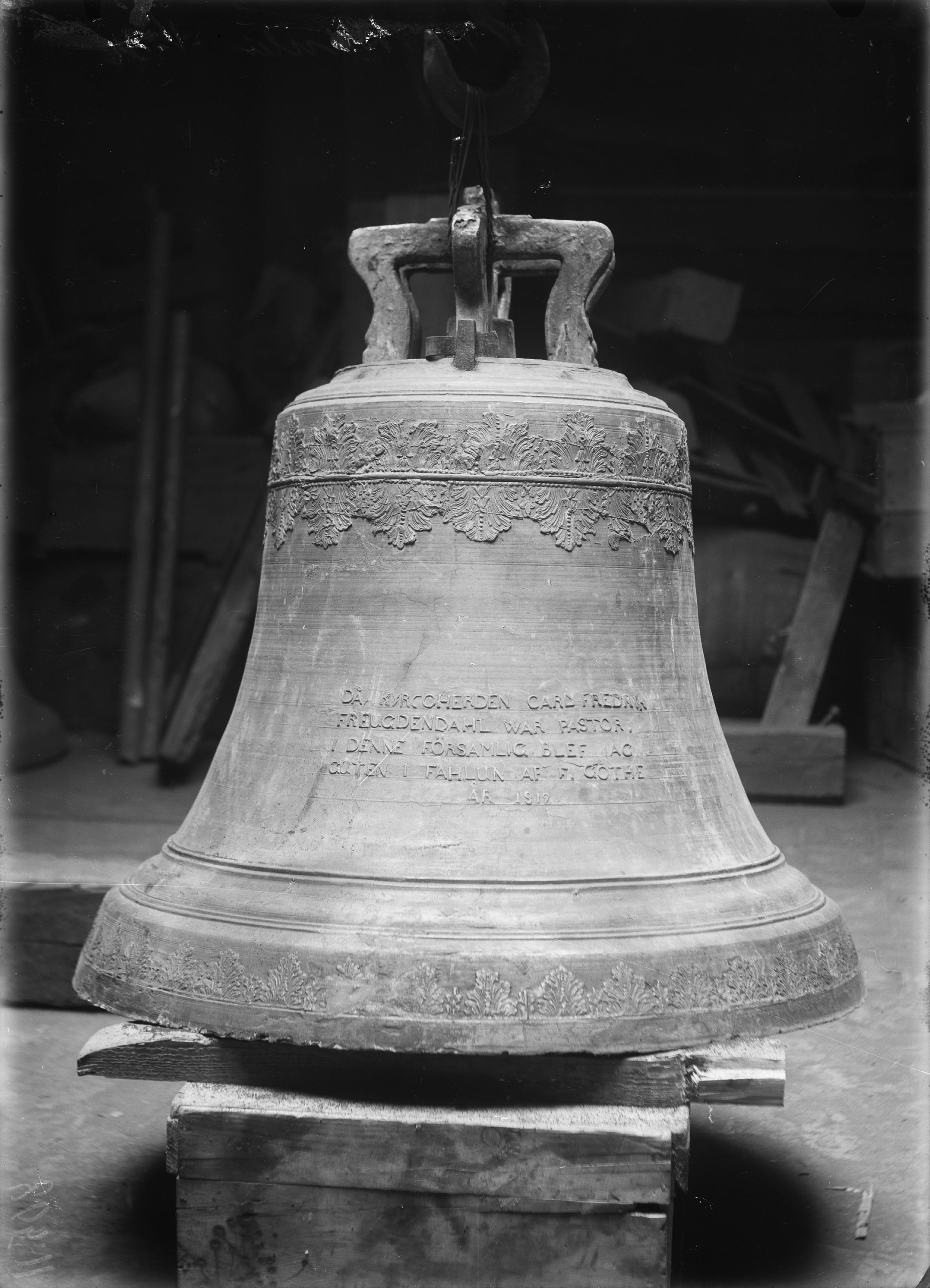 Klocka gjuten av E. Göthe i Falun 1819. Nedsmält 1925.