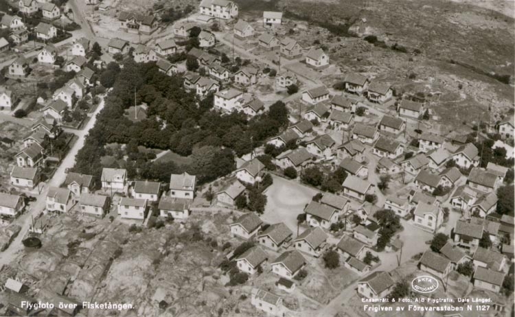 Tryckt text på kortet: "Flygfoto över Fisketången".