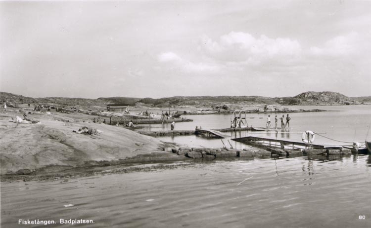 Tryckt text på kortet: "Fisketången. Badplatsen".