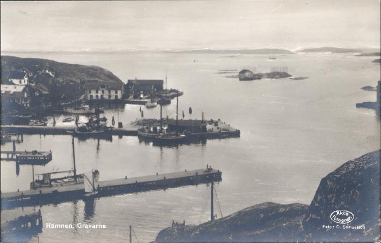 Tryckt text på kortet: "Hamnen, Gravarne".