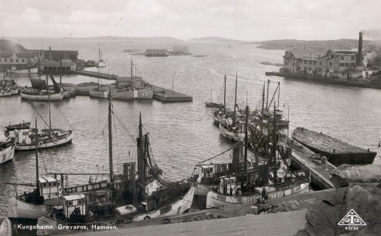 Tryckt text på kortet: "Kungshamn. Gravarne Hamnen".