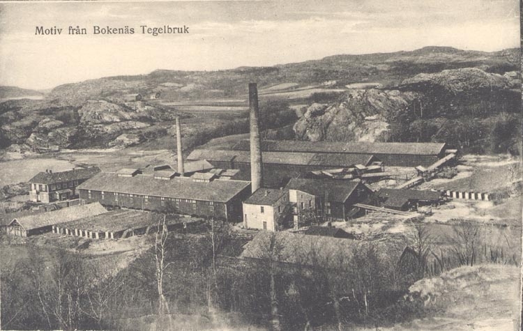 Tryckt text på kortet: "Motiv från Bokenäs Tegelbruk".