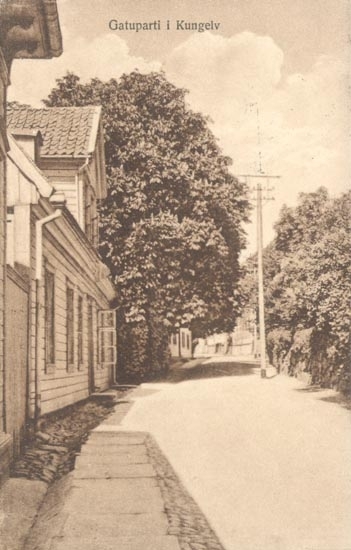 Tryckt text på kortet: "Gatuparti i Kungelv".