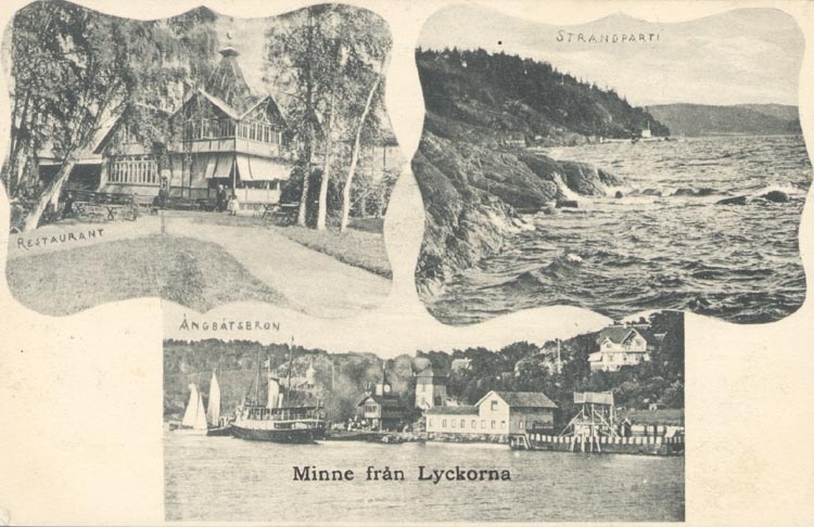 Tryckt text på kortet: "Minne från Lyckorna".