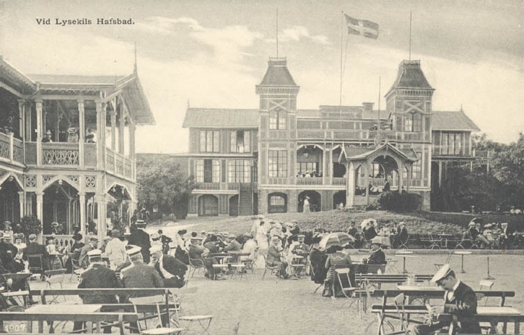 Tryckt text på kortet: "Vid Lysekils Hafsbad".