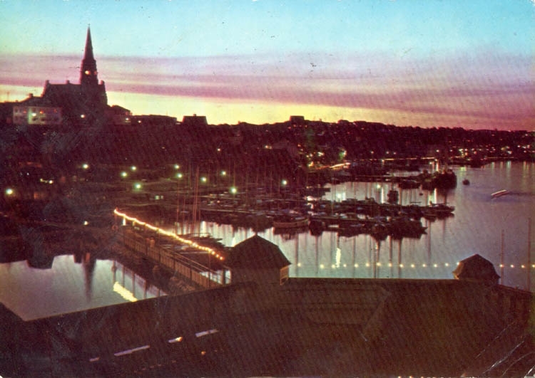 Tryckt text på kortet: "Lysekil. Kvällsbild från Släggön".