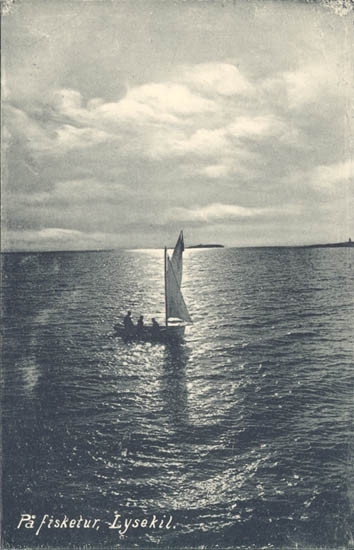 Tryckt text på kortet: "På fisketur, Lysekil."