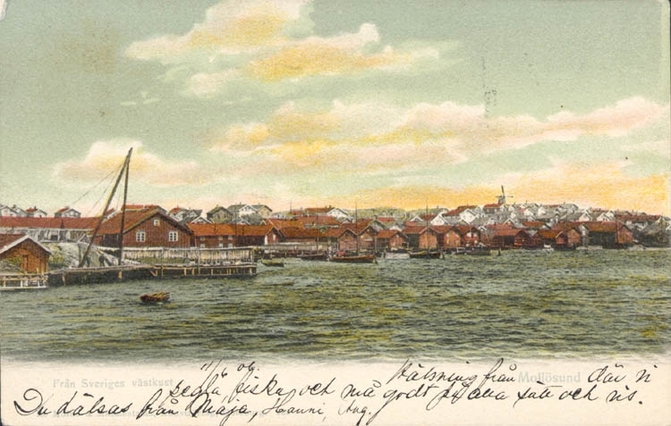 Tryckt text på kortet: "Från Sveriges västkust. Mollösund."