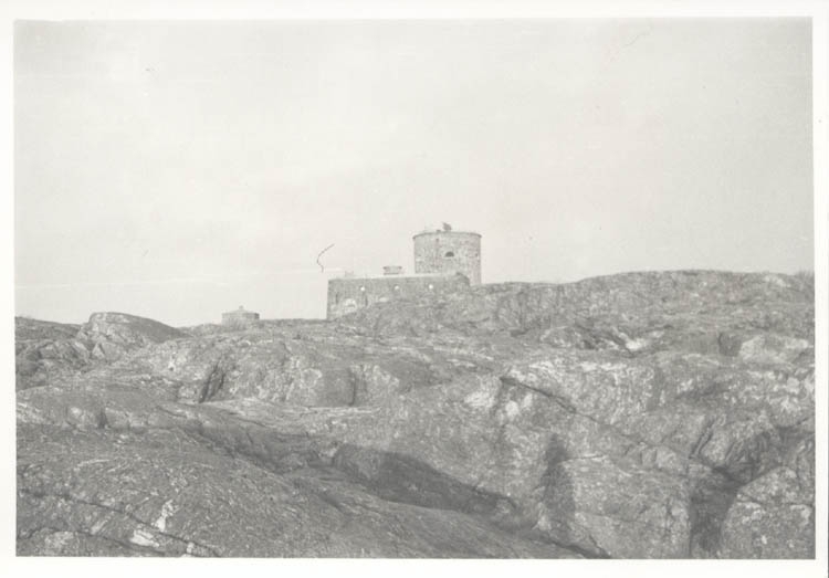 Noterat på kortet: "Marstrand. Fästningens torn i närheten av Tåudden. Juldagen 1961."