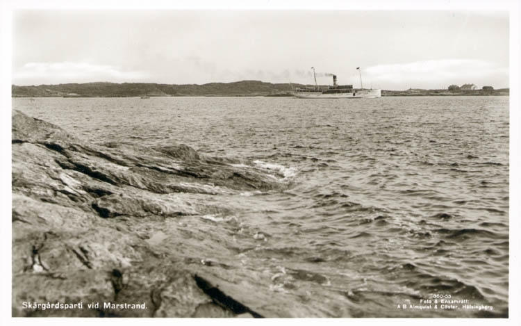 Tryckt text på kortet: "Skärgårdsparti vid Marstrand."