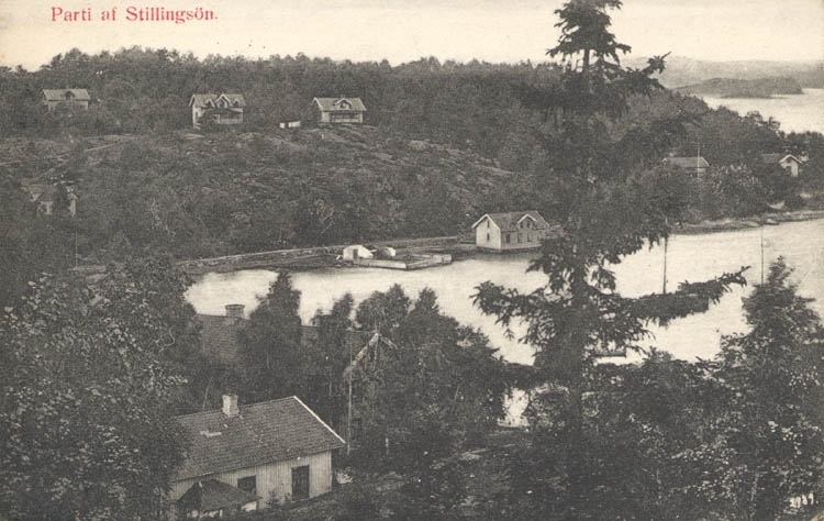 Tryckt text på kortet: "Parti af Stillingsön."