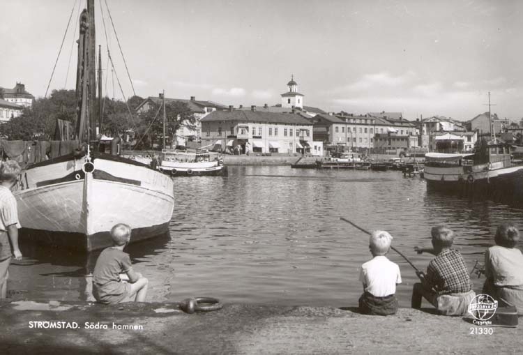 Tryckt text på kortet: "Strömstad. Södra Hamnen."