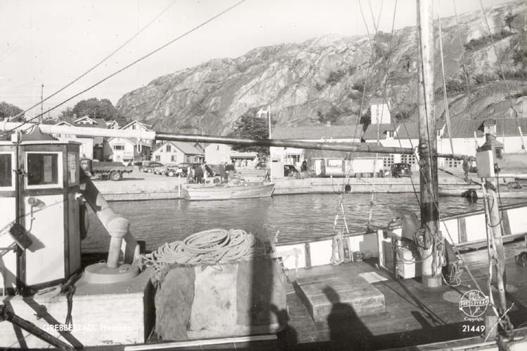 Tryckt text på kortet: "Grebbestad. Hamnen."