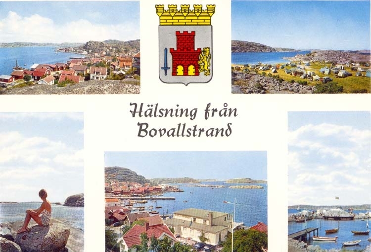 Tryckt text på kortet: "Hälsning från Bovallstrand."