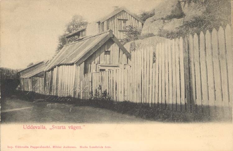Tryckt text på kortet: "Uddevalla. Svarta vägen."