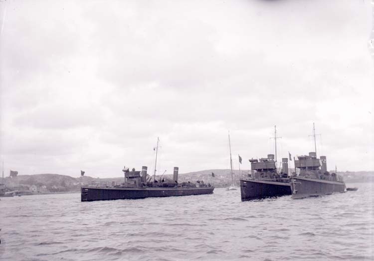"Torpedbåtar Vindorkan, Virgo". Slätten Lysekil i bakgrunden.