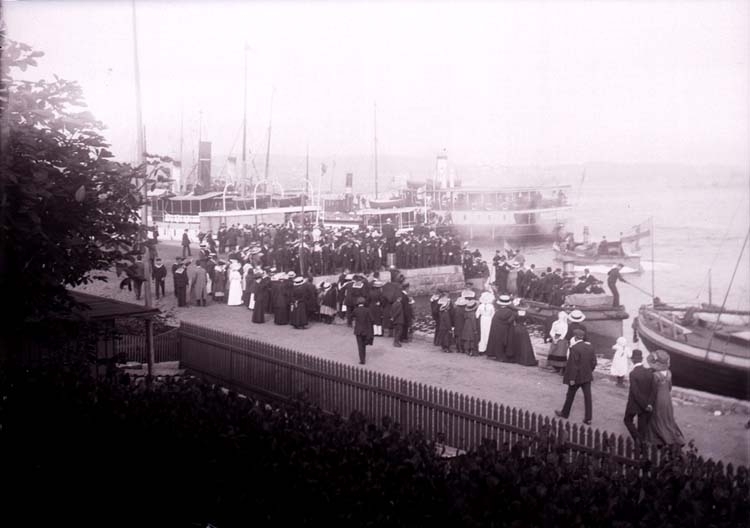 Enligt text som medföljde bilden "Vid båthamnen aug. 11".