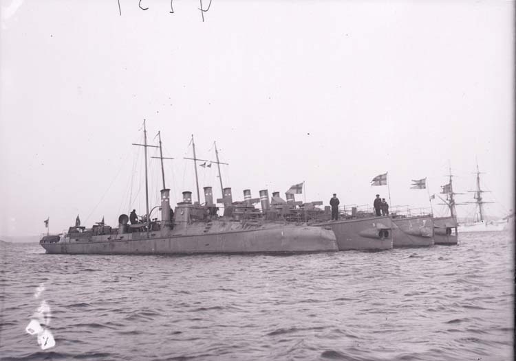 Enligt text som medföljde bilden: "Torpedbåtarna N.1, 2, 3, 4 Aug 07."