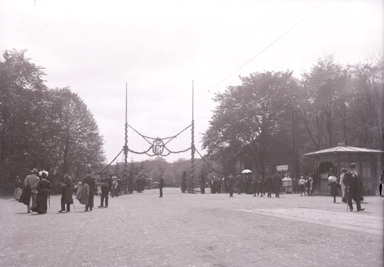 Enligt text som medföljde bilden: "Entré till Slottskogen. Maj 1908."