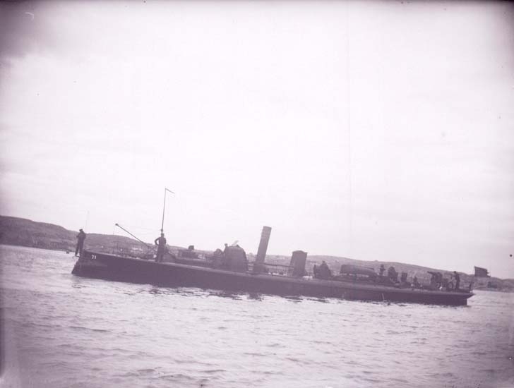 Enligt text som medföljde bilden: "Lysekil, Svenske Torpedbåten N.71 (Bygve) från sidan 2:dra klass 19/8 1899".