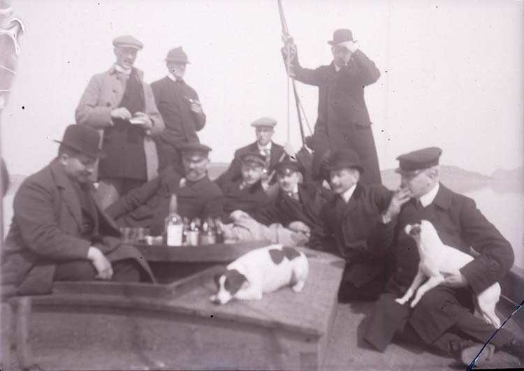 Enligt text som medföljde bilden: "Gullmaren. Grupp på jakt. April 12."