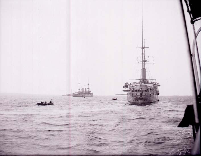 Enligt text som medföljde bilden: "Utländske Örlogsfartyg."
