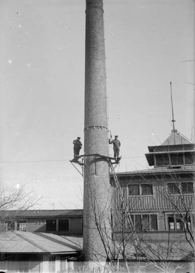 Enligt text som medföljde bilden: "Lysekil. Rep. af....? skorsten Maj 08."