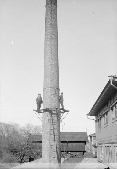 Titel: Enligt text som medföljde bilden: "Lysekil. Rep. af....? skorsten Maj 08."