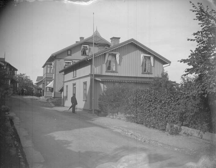 Enligt text som medföljde bilden: "Lysekil Hallgrens hus från dr. Wides villa 1898".