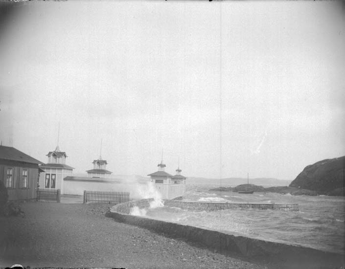 Enligt text som medföljde bilden: "Lysekil. Vid Carlavägen och herrbassinen i storm
