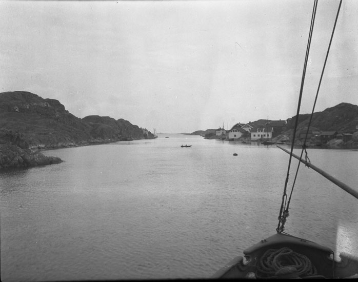 Enligt text som medföljde bilden: "Kyrkesund med väntande båt."