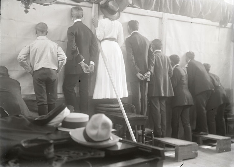 Enligt text som medföljde bilden: "Sällskapsspektakel bakifrån."