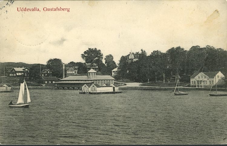 Tryckt text på vykortets framsida: "Uddevalla, Gustafsberg."