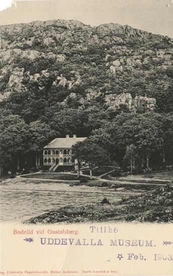 Tryckt text på vykortets framsida: "Bodelid vid Gustafsberg,"