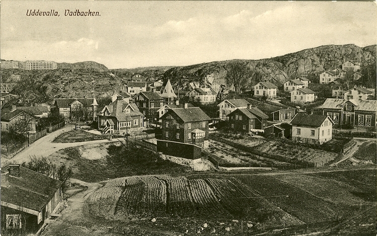 Tryckt text på vykortets framsida: "Uddevalla, Vadbacken."
