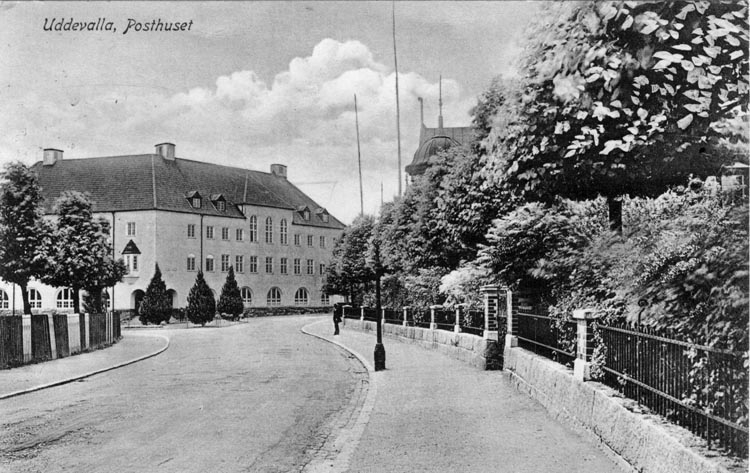 Tryckt text på vykortets framsida: "Uddevalla, Posthuset."