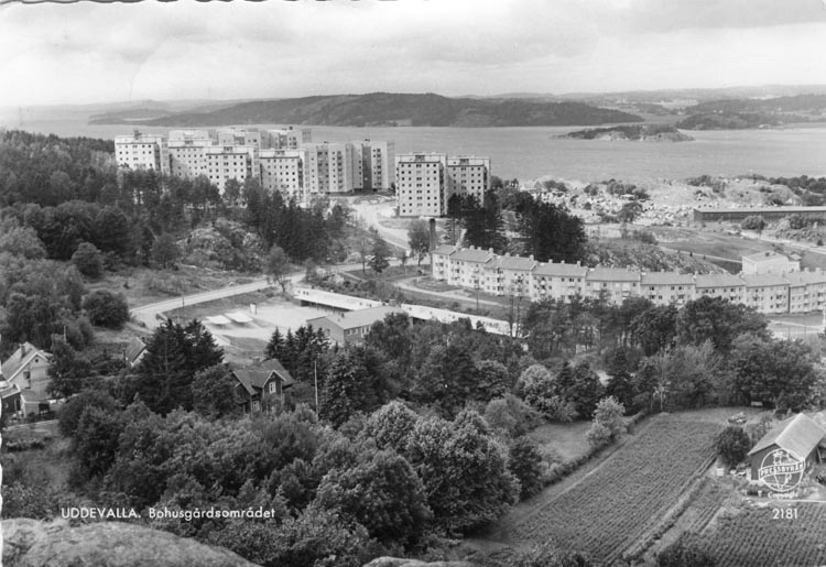 Tryckt text på vykortets framsida: "Uddevalla. Bohusgårdsområdet."
