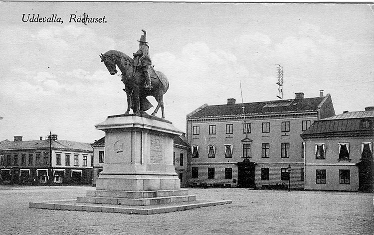 Tryckt text på vykortets framsida: "Uddevalla Rådhuset".