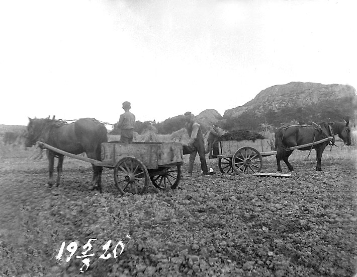 "Dyngkörning. Gösta kör tomkärran, Johan sprider. 5/8 1920."